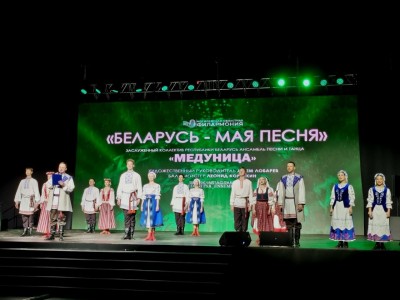 30 января на площадке Республиканского унитарного предприятия «Национальный выставочный центр «БелЭКСПО» в рамках выставки достижений суверенной Беларуси «Моя Беларусь» прошел концерт «Беларусь мая песня» заслуженного коллектива Республики Беларусь ансамбля песни и танца «Медуница».
