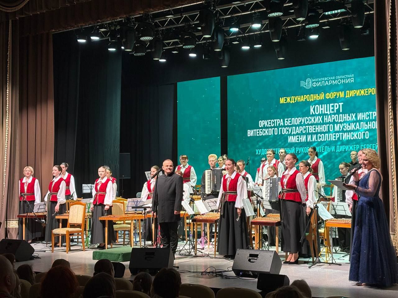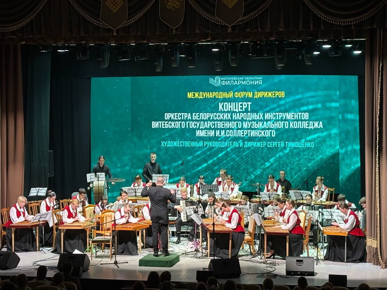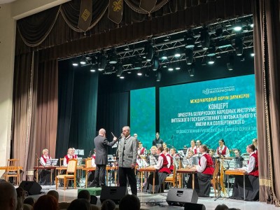 12 марта в концертном зале филармонии в рамках международного форума прошел концерт обладателя Гран-при конкурса имени Л.Л. Иванова (2024) оркестра белорусских народных инструментов Витебского государственного музыкального колледжа имени И.И.Соллертинского (художественный руководитель и дирижер Сергей Тимошенко).