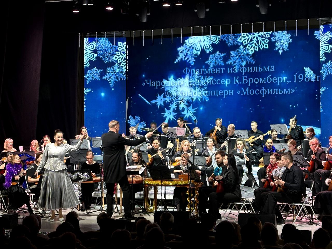 В программе прозвучали самые известные песни из советских кинофильмов в исполнении заслуженного коллектива Республики Беларусь оркестра народных инструментов имени Л. Иванова (художественный руководитель и главный дирижер Денис Черта и артистов филармонии)
