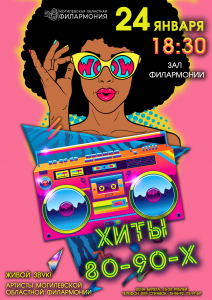 Артисты филармонии отправятся с Вами в путешествие в прошлое. Для Вас прозвучат лучшие танцевальные хиты того времени: Ace of base, C.C. Catch, ABBA, Mr. President, Руки Вверх, На-На, Комбинация, Иванушки International и многие-многие хиты других исполнителей.