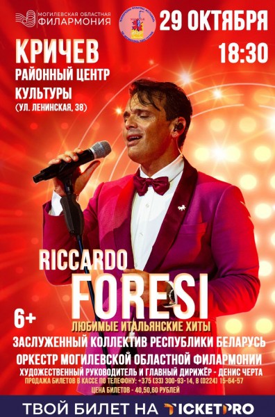 “ПОСЛЕДНИЕ РОМАНТИКИ” Концерт РИККАРДО ФОРЕЗИ (Италия) в сопровождении заслуженного коллектива Республики Беларусь оркестра народных инструментов имени народного артиста Беларуси Леонида Иванова Могилевской областной филармонии